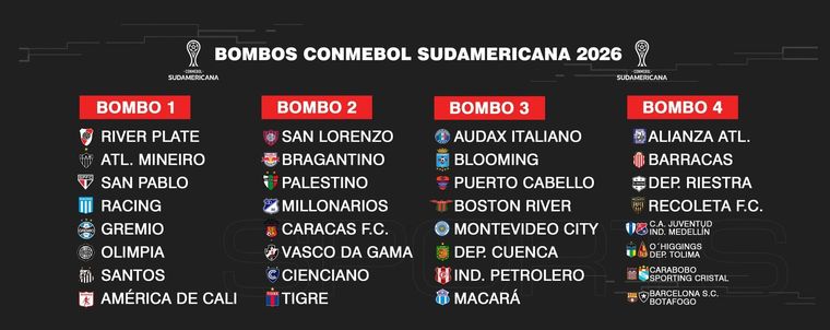 Bombos de la Copa Sudamericana 2026: los rivales accesibles ¿y el grupo de la muerte? que pueden tocarles a River y Racing
