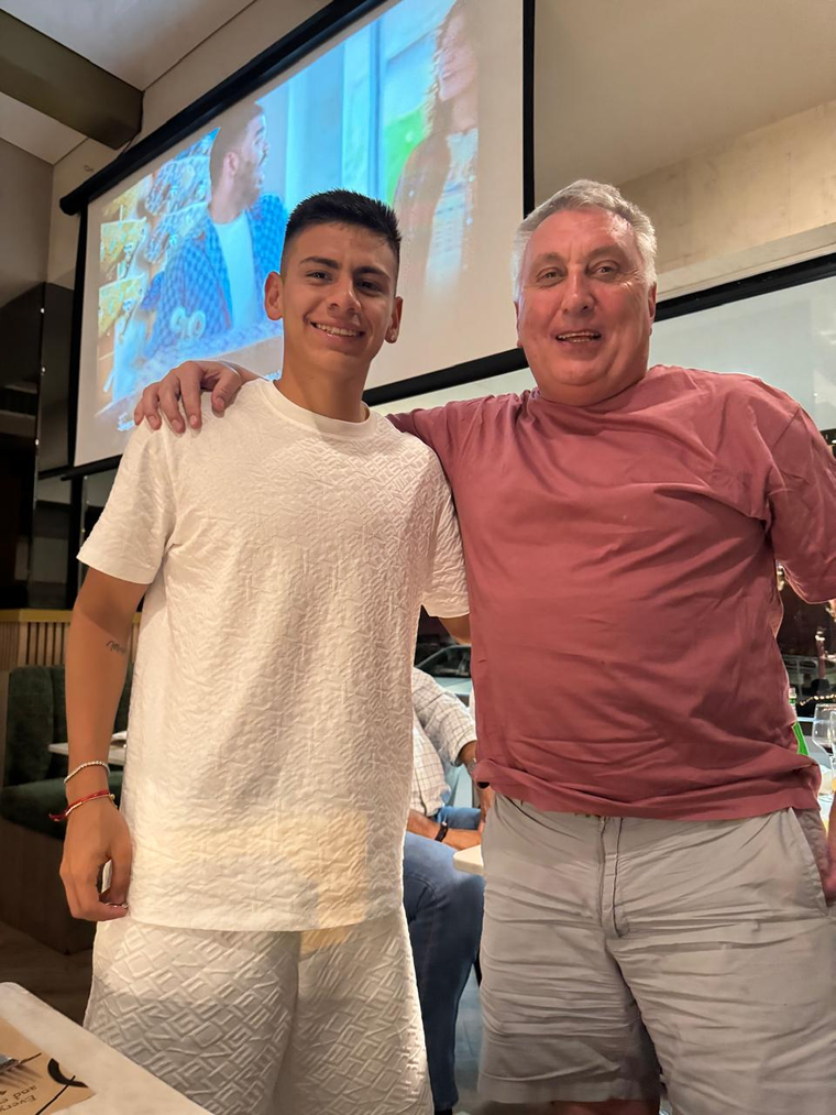 Un encuentro para cenar y departir terminó en conversación con un conocido periodista y relator y una foto con un destacado jugador.