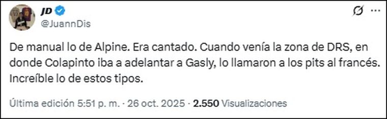 Después de la polémica por el "hold positions", la decisión de Alpine -estrategia o no- no pasó desapercibida en redes: