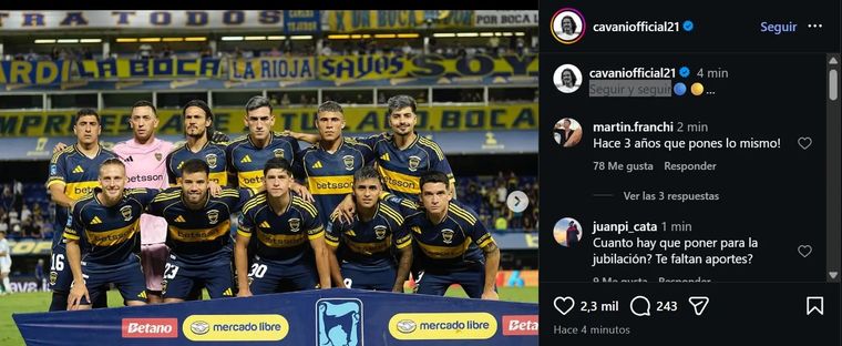 Con el paso de las horas, y tras quedar nuevamente en el centro de la escena, el goleador uruguayo utilizó sus redes sociales para manifestarse sobre lo sucedido. Lo hizo primero a través de una historia de Instagram con una frase cargada de mensaje: “Cuando las cosas no salen, es cuando más hay que seguir… Vamo Boca”, acompañada por una imagen suya con la pelota durante el encuentro.