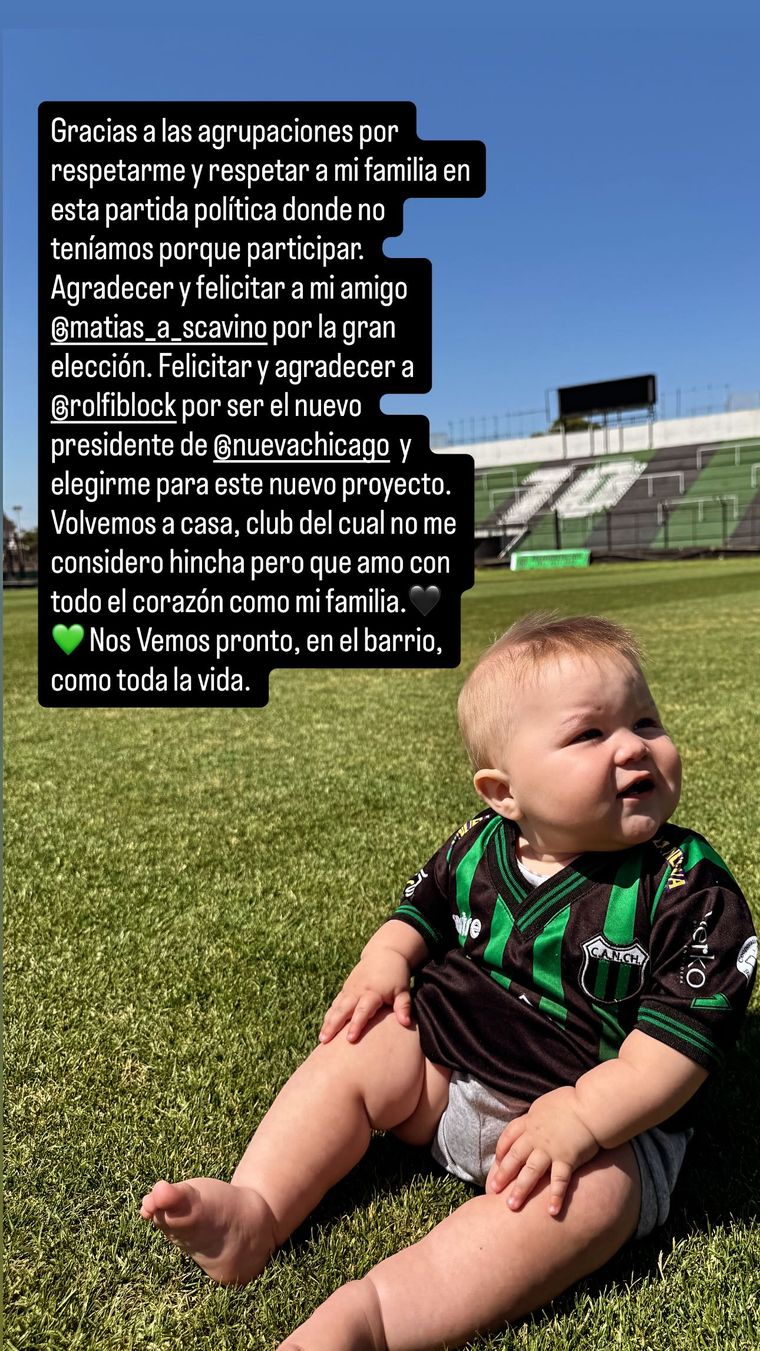 Más allá de que el club no lo ha hecho oficial, el propio entrenador escribió en sus redes sociales: "Gracias a las agrupaciones por respetarme y respetar a mi familia en esta partida política donde no teníamos por qué participar. Agradecer y felicitar a mi amigo Matías Scavino por la gran elección. Felicitar y agradecer a Rodolfo Block por ser el nuevo presidente de Nueva Chicago y elegrime para este nuevo proyecto".