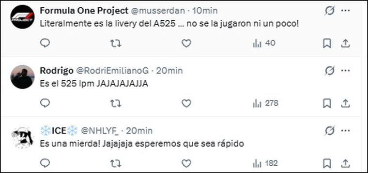 Al igual que el A525 del año pasado, en el nuevo modelo predominan el rosa y el azul, que son los colores de sus principales sponsors. Este detalle no pasó desapercibido en las redes, ya que se generó gran expectativa en torno al nuevo diseño de Alpine, pero –según la opinión de los fanáticos en las redes- ¡es igual al anterior!
