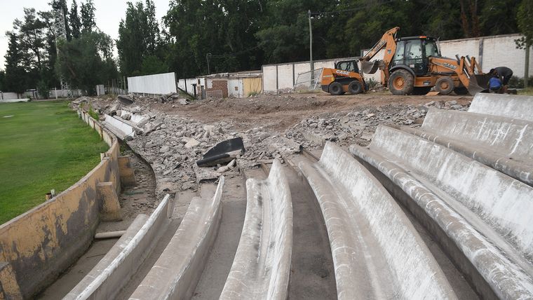 "En la zona de los viejos camarines, detrás del arco sur, están trabajando las máquinas para sacar todos los escombros y se va a empezar a sembrar todo para atrás, para que cuando se corra la cancha, ya esté todo sembrado", resaltaron, además, los responsables de las obras en la institución.