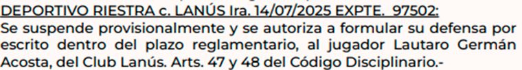 La sanción contra Lautaro Acosta