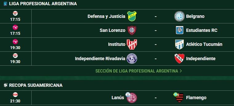 Para el jueves hay cuatro partidos previstos: Defensa y Justicia vs Belgrano y San Lorenzo ante Estudiantes de Río Cuarto a las 17.15, mientras que Instituto frente a Atlético Tucumán e Independiente Rivadavia contra Independiente irán a las 19.30.