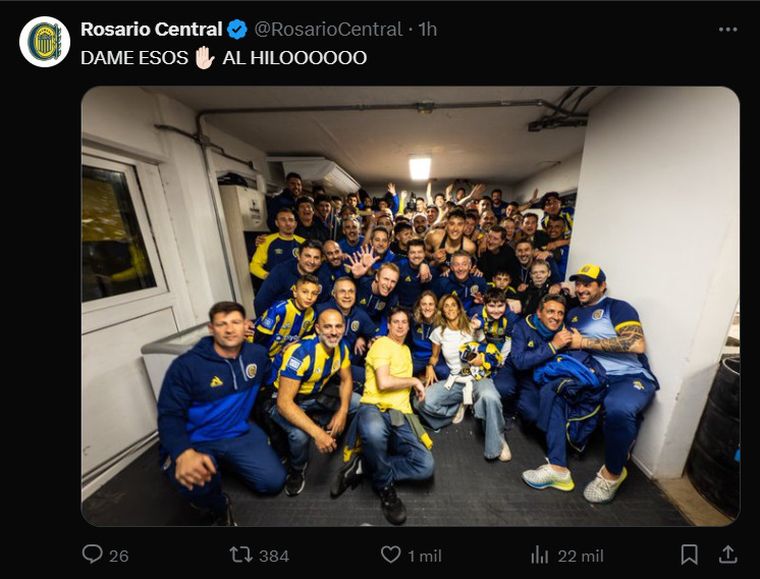 Pero los 21 partidos de ventaja no son la única cifra destacada que se alcanzó esta tarde. Con la victoria de hoy, el Canalla ganó el quinto clásico consecutivo, todos de ellos por 1-0. "Dame esos cinco (con un emoji de una mano abierta) al hilo", dice una publicación con una postal de los jugadores en el vestuario, muchos de ellos con los 5 dedos levantados.