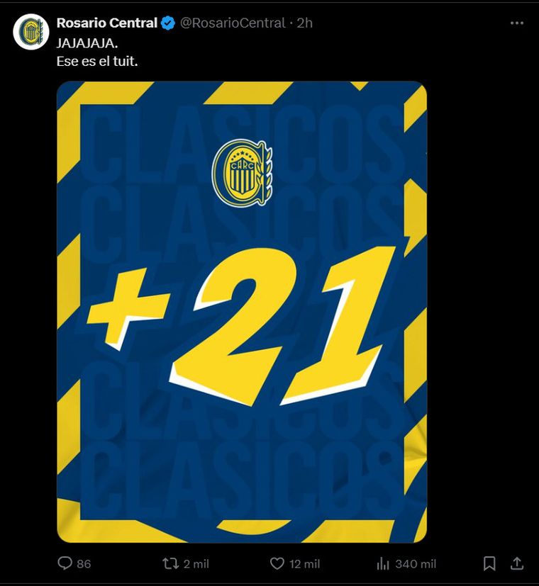 Inmediatamente después, postearon una placa azul y amarilla que recuerda la diferencia de victorias que le sacaron en el historial: "+21". Arriba, una breve pero muy picante leyenda: "JAJAJAJA. Ese es el tuit".