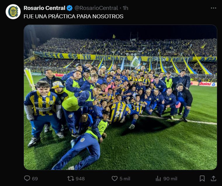 Rosario Central no dejó pasar la oportunidad de burlarse de Newell's en su cuenta oficial de X tras el 1-0 en el Gigante de Arroyito.