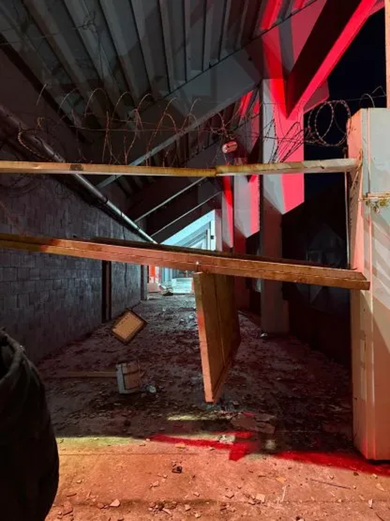 Rejas forzadas, chapones, fierros y butacas arrancados, puestos de comida vandalizados, baños destruidos, piedras por doquier: son muchas de las cosas que se pueden apreciar entre otras en las imágenes viralizadas. En el medio, manchones de sangre y restos de la ropa de los hinchas del Bulla que les fueron extraídas por la barra de Independiente durante el feroz ataque final.