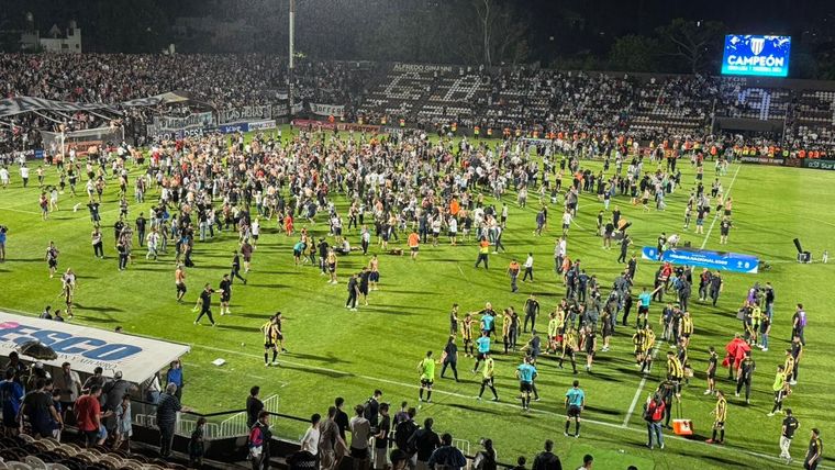 La tensión se convirtió en felicidad y el acto formal de entrega de la copa tuvo que demorarse por esta invasión. De hecho, la voz del estadio tuvo que advertirlos y un cordón policial reunirlos en un rincón, el cual no resistió y los hinchas terminaron celebrando junto a los jugadores con la entrega del premio y posterior vuelta olímpica. Fiesta completa.