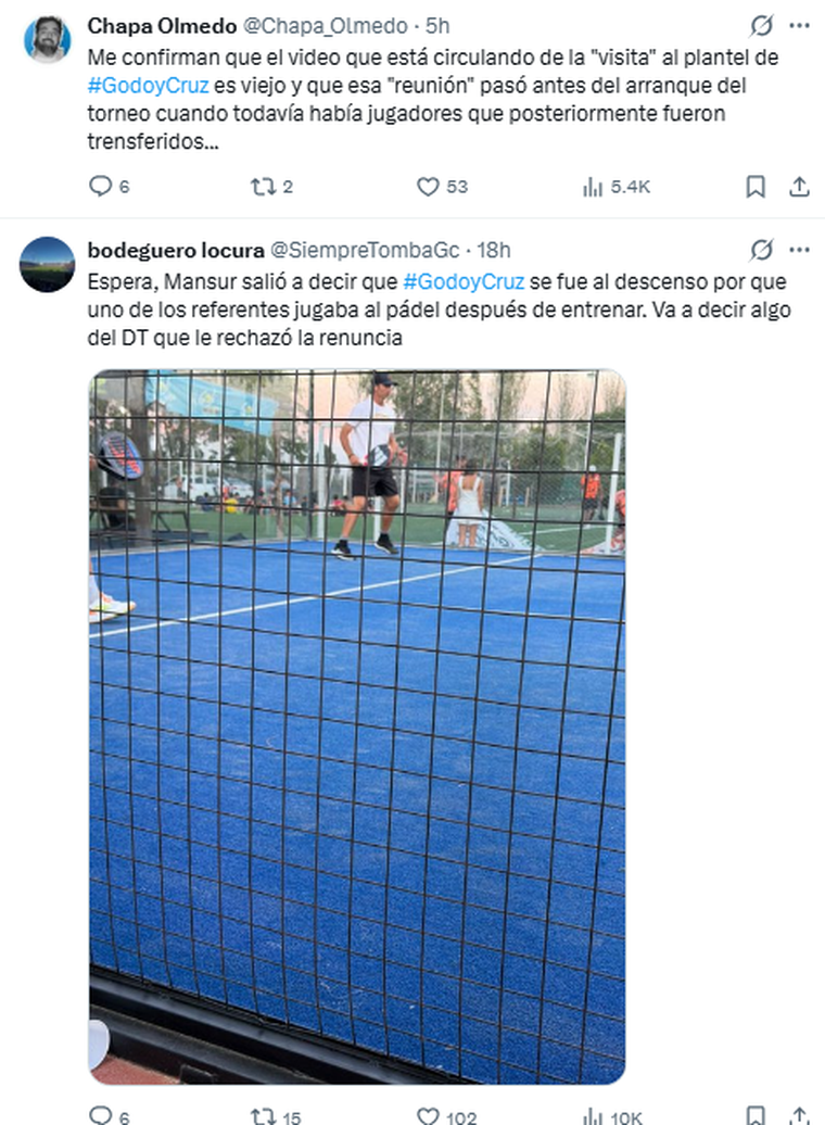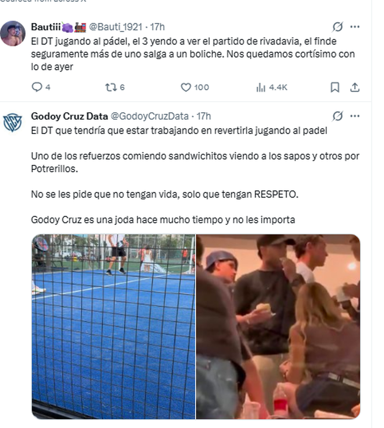 Las redes sociales volvieron a encender la mecha en Godoy Cruz. En las últimas horas comenzaron a circular imágenes del entrenador del Tomba jugando al pádel, situación que generó una fuerte reacción entre los hinchas, muchos de los cuales recordaron lo ocurrido el año pasado con Pol Fernández, cuando una situación similar derivó en críticas y polémica.