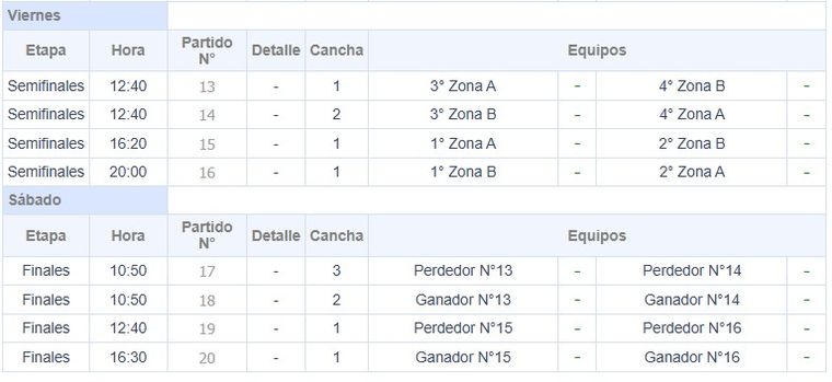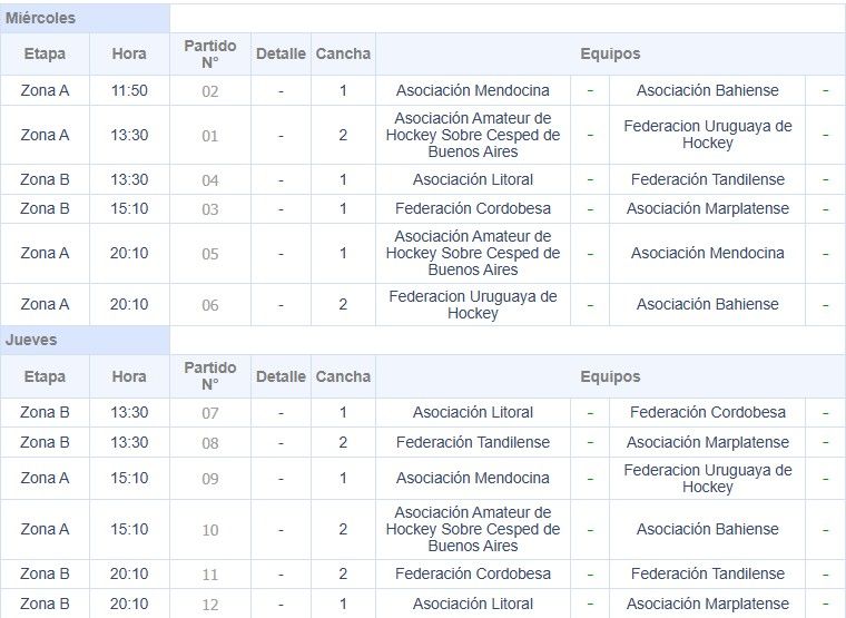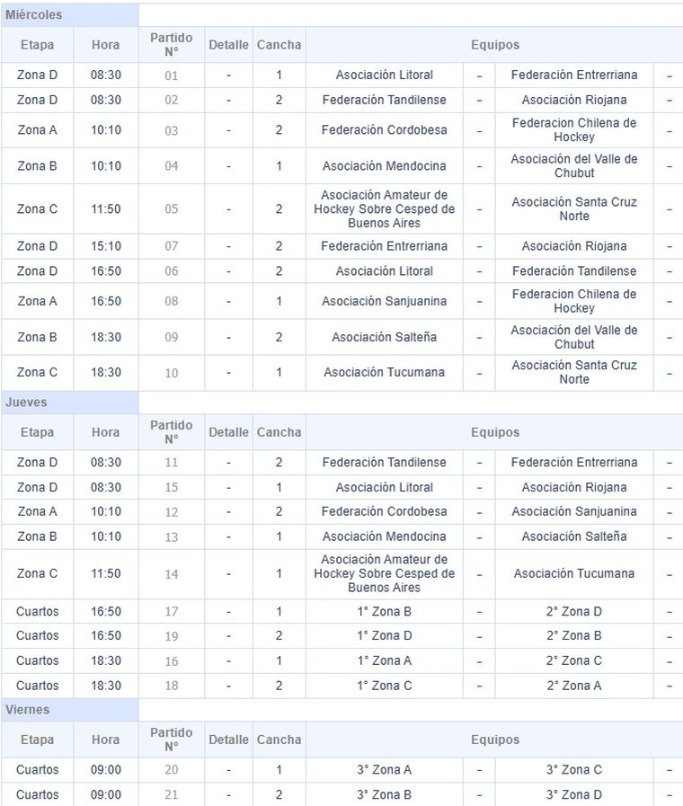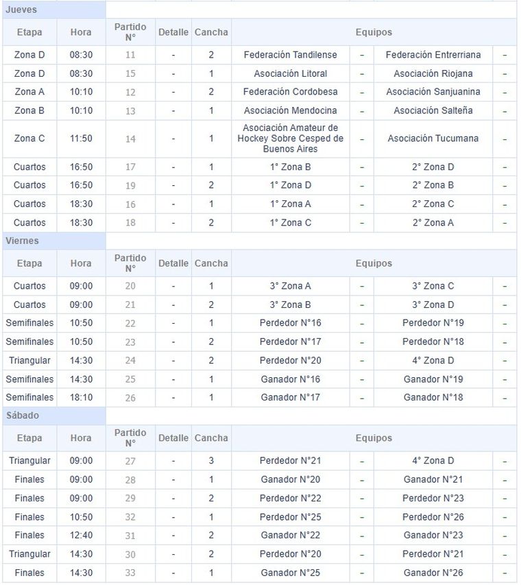 El fixture de las damas (Fuente: Confedereación Argentina de hockey)