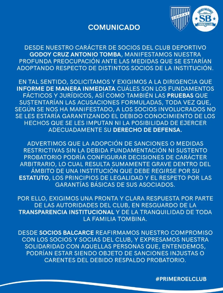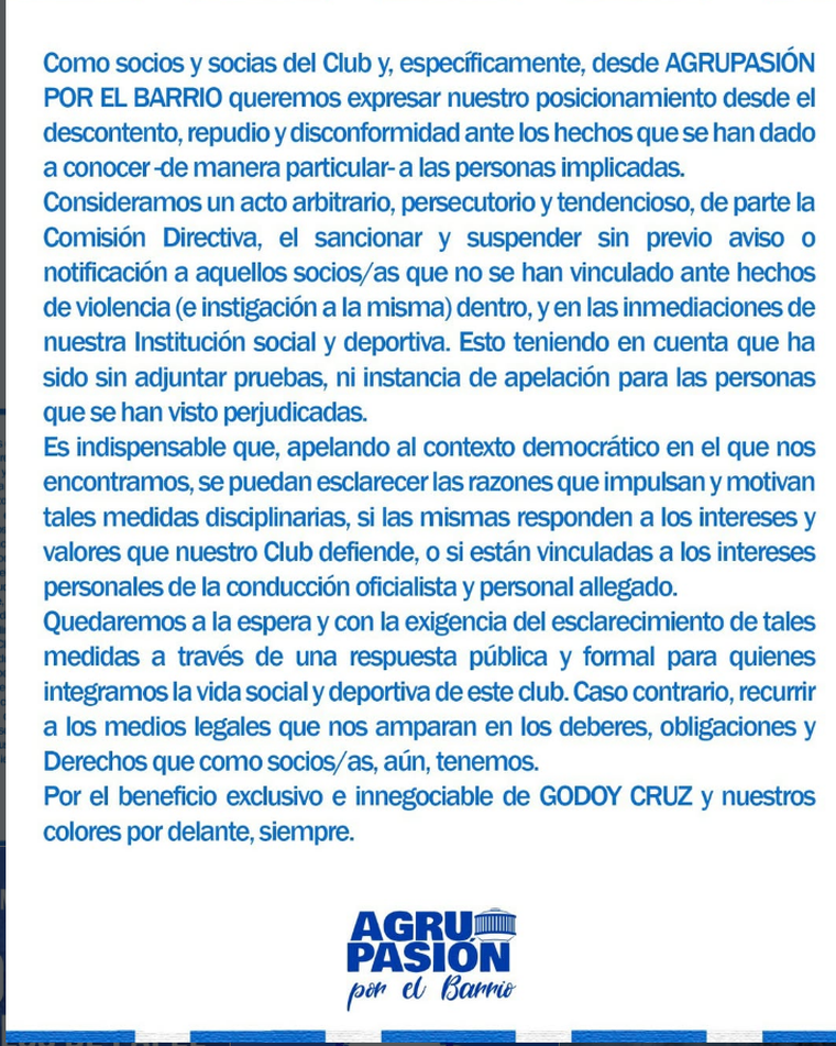 Los socios de Godoy Cruz hablan de sanciones unilaterales y persecución