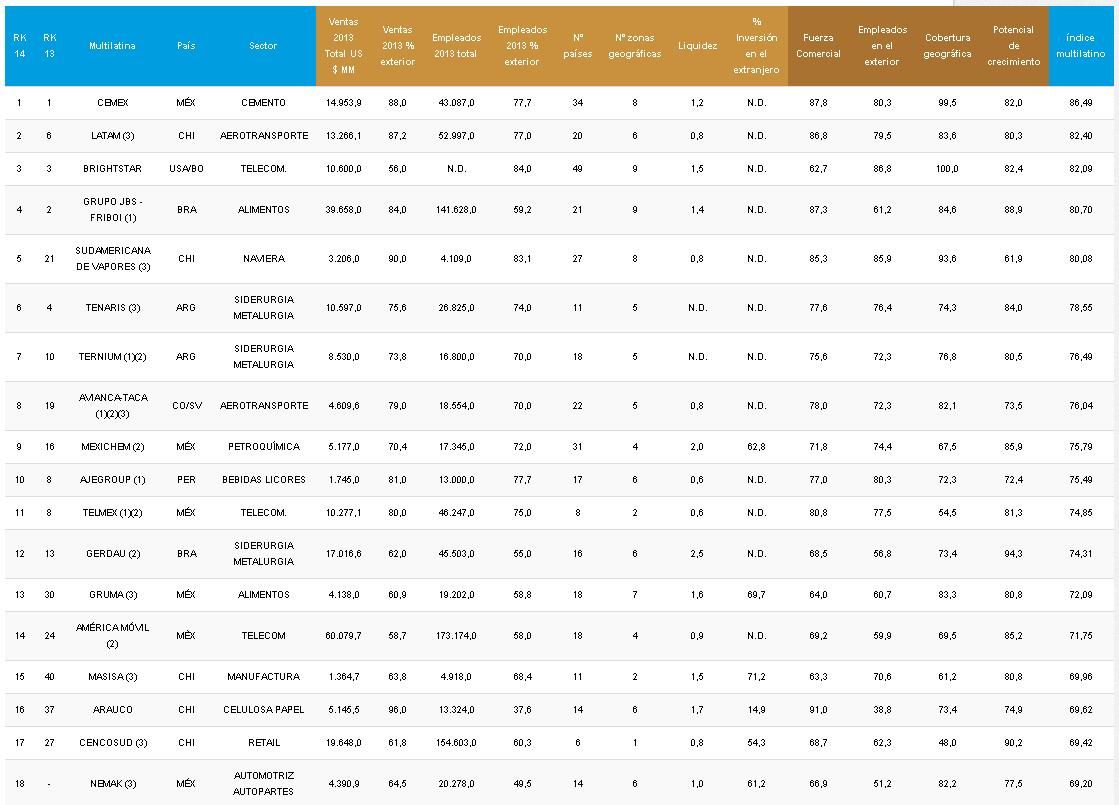 El año pasado la compañía nacida en Mendoza ocupó el puesto 7 de la lista y este año figuró en el 34. Según la lista publicada por AmericaEconomia.com, está acreditada en el rubro "energía" y figura con 2.829 trabajadores en su plantilla de personal en 30 países.