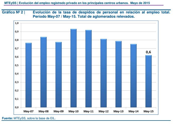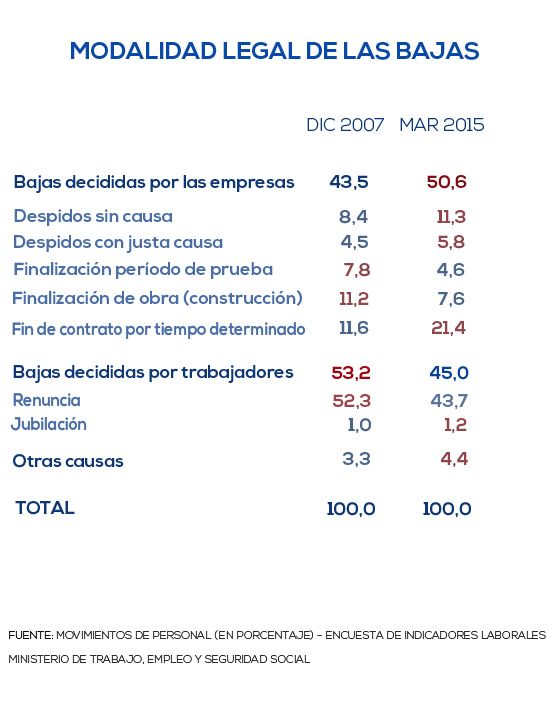 Un dato importante: cuando Cristina asumió en 2007, más de la mitad de las bajas de personal de una empresa fueron decididas por los trabajadores y esto se revirtió en 2015: ahora el empleador es que más incide en la baja de personal.