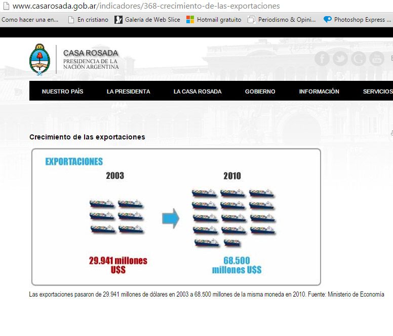 Relato desactualizado. ¿Qué está informando hoy la web de la Casa Rosada acerca de las exportaciones de Argentina? Hagan clic en la imagen de abajo: