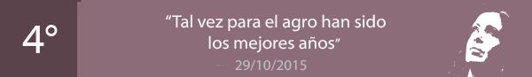 Es conocida la crisis en las economías regionales, que recrudeció en la segunda gestión de Cristina Kirchner, con el cepo y las restricciones. El "agro" entendido en este caso como "campo", algunos datos de organismos oficiales -como Ministerio de Agricultura, Ganadería y Pesca, e Instituto Nacional de Vitivinicultura- para destacar son: descenso en la producción y exportaciones de trigo, una caída de precios externos (en dólares) del trigo y la soja; una brusca caída en las exportaciones de vino, bodegas que han cerrado o dejado de elaborar vino, menos superficies cultivadas de trigo y viñedos; y en lo que respecta a la carne, un gran retroceso en las exportaciones.
