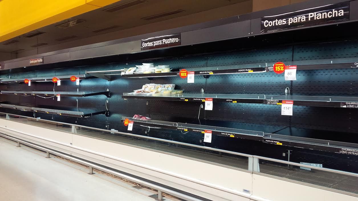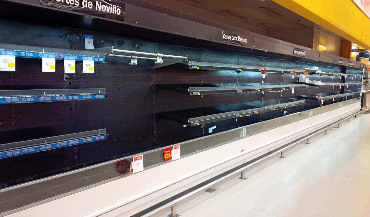 Góndolas de carne vacías en los supermercados