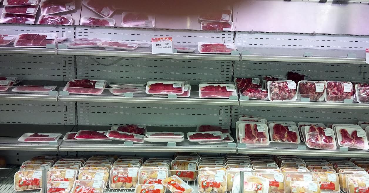 En el hipermercado Walmart de Dorrego, las góndolas están vacías, no hay exhibido ningún corte vacuno, ni siquiera los más económicos están a la venta. Sólo hay a disposición de los clientes lechón congelado a $125 el kilo y pollo en el mismo estado a $24 el kilo.
