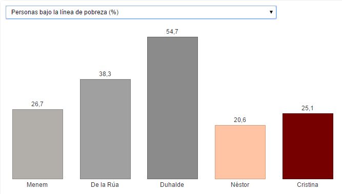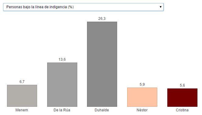Comparado con los ciclos de Duhalde y De la Rúa (marcados por los efectos de la devaluación tras la crisis de 2001), el ciclo kirchnerista disminuyó la pobreza e indigencia. En cambio, si se lo compara con el fin del menemismo, las diferencias son mínimas.