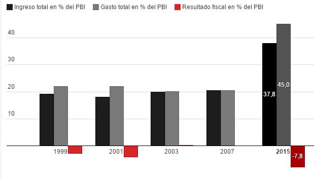 Déficit y gasto público. Los números en rojo de las cuentas públicas están creciendo a un preocupante ritmo, incluso superior al de la crisis de 2001-2002, que desembocó en el default de deuda más grande de la historia. Cristina está cerrando por cuarto año consecutivo las cuentas públicas en rojo. Los datos de 2015 son estimativos