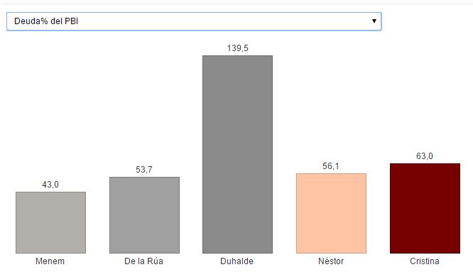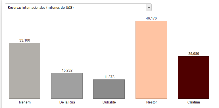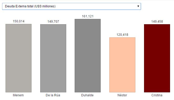 De este modo, respecto del fin de ciclo menemista si bien se logró bajar la deuda externa (y cancelar la totalidad de la misma con el FMI), no fue así con la deuda pública total, como tampoco se logro mejorar la situación de las reservas del Banco Central, que a ciencia cierta no sabe cuánto hay.