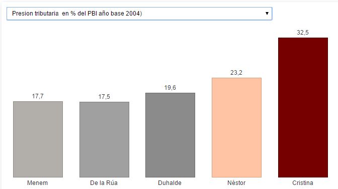Presión tributaria récord. Lo que hoy un argentino paga en impuestos casi duplica a lo que abonaba en la era menemista. Según Juan José Llach, quien fue viceministro de Economía en 1996, la carga tributaria que deja la actual gestión es también contraria al progreso económico por pésimos impuestos, como la inflación, las retenciones a las exportaciones y el gravamen a los créditos y débitos.