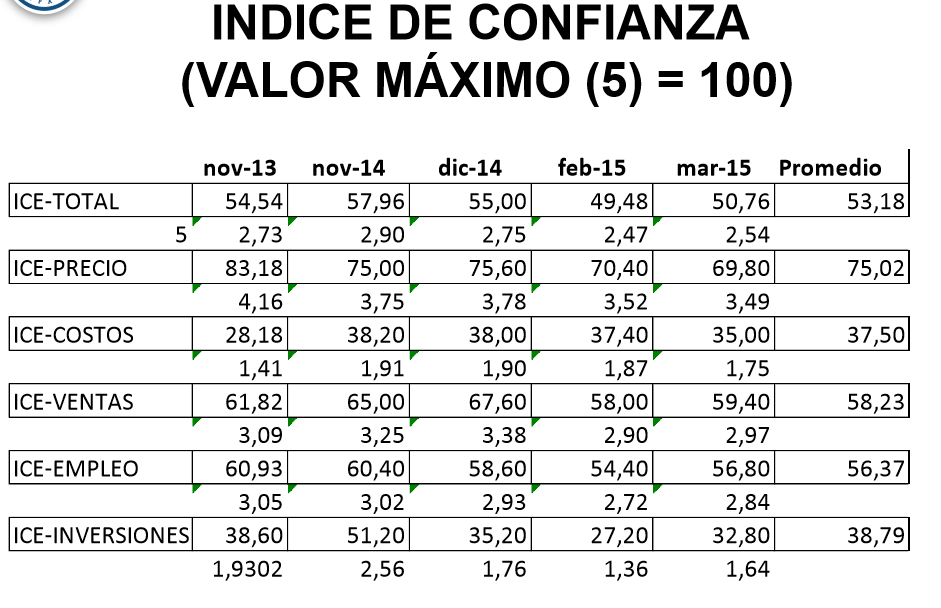 Todos los indicadores descritos finalmente convergen en el Índice de Confianza del Empresario, que es de 50,76 (de un máximo de 100). Y está entre los tres más bajos desde el primer período de cálculo, que fue noviembre de 2013. Y que se puede leer así: el clima de negocios en Mendoza en lo que va del año es peor que desde agosto a diciembre de 2014, que fue cuando se empezaron a sentir los coletazos del default.