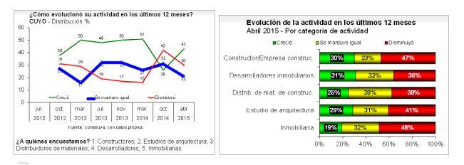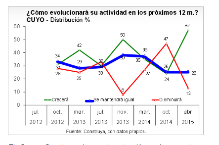 Al clasificar las respuestas obtenidas en la última medición por regiones, se observó una elevada variabilidad. “En particular, en CUYO se puede observar que 43% consideró que su actividad creció en mayo 2014-abril 2015, junto a 22% que lo mantuvo”, sostuvo Pedro Brandi.