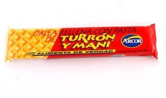 El turrón es una oblea rellena de una pasta de turrón con maní.
