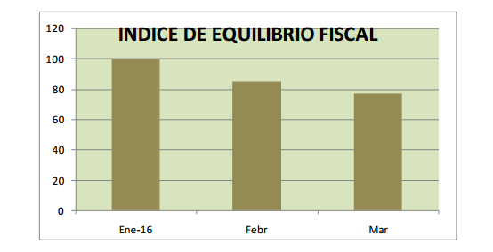 El mencionado índice tuvo un valor cercano a 100 en enero -merced al alto valor registrado por las contribuciones a la Seguridad Social- pero tuvo un significativo retroceso en febrero y marzo, producto del menor nivel registrado por dichas contribuciones.