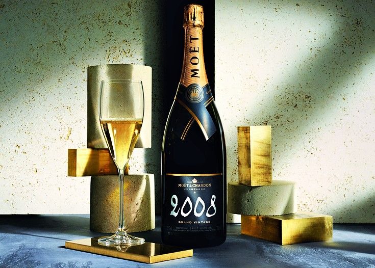 El Moët & Chandon Grand Vintage 2008 está compuesto por 40% de Chardonnay, 37% de Pinot Noir y 23% de Meunier.