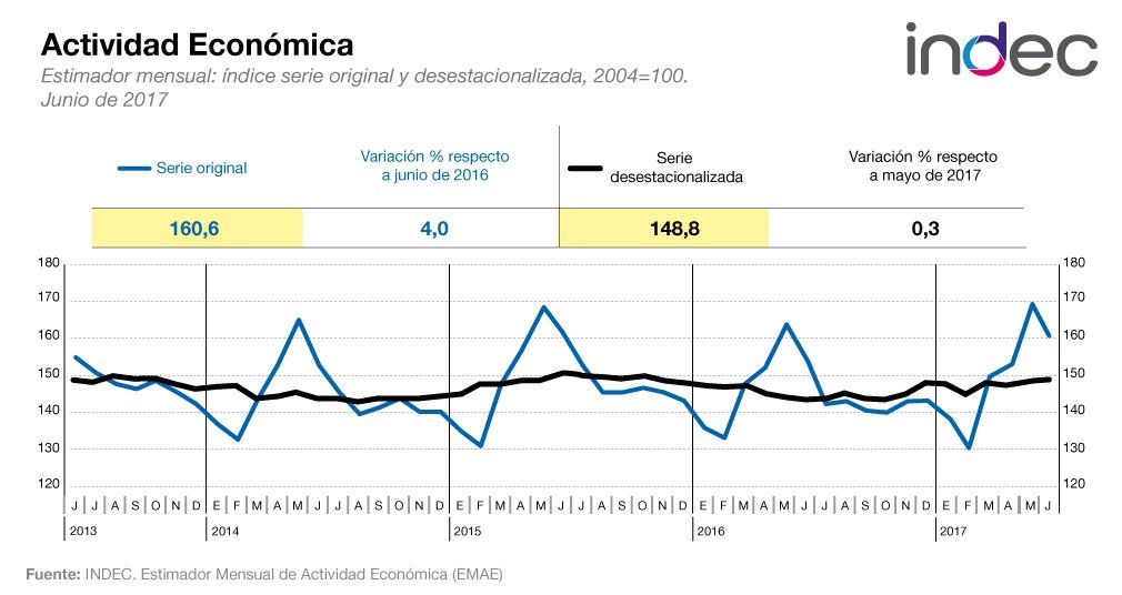Ante mayo, el Estimador Mensual de la Actividad Económica (EMAE) registró además un incremento de un 0,3% en el sexto mes del año.