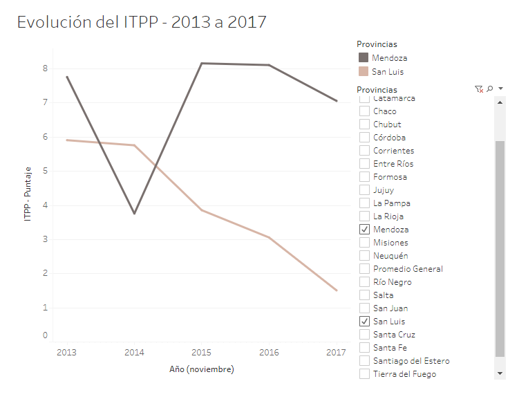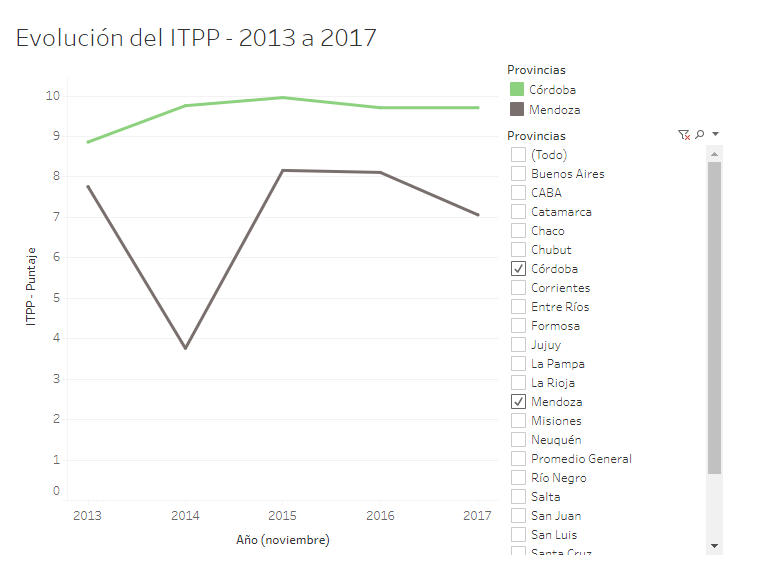 Respecto de 2016, el índice refleja que trece provincias mejoraron su puntaje. Jujuy, Santa Cruz y Corrientes fueron las de mayor progreso, aunque las dos primeras, a diferencia de la tercera, partieron de valores muy bajos.