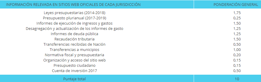 El Índice 2017 de Transparencia Presupuestaria Provincial (ITPP) que elabora Cippec ubica a Córdoba por cuarto año consecutivo con el nivel de transparencia más elevado, , seguido por la Ciudad de Buenos Aires y Entre Ríos, con puntajes de 9,70, 9,55 y 9,50, respectivamente.