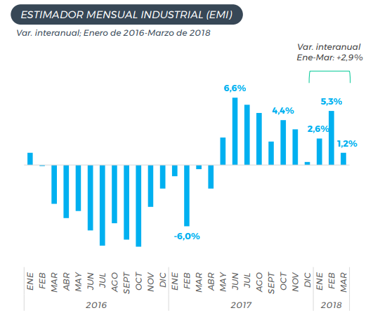 Industria. Lo -. El crecimiento se desaceleró en marzo (último dato registrado)..