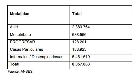 El grupo mayor de los que cobran el IFE está constituido por desocupados, informales y beneficiarios de la AUH: