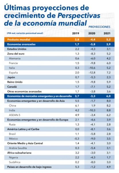 El organismo también dio sus proyecciones globales para 2020 y 2021, como lo muestran las siguientes imágenes: