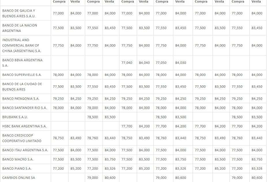 El dólar oficial hoy viernes 30 de octubre de 2020 se cotizó en 77,69 pesos (compra) y 83,890 (venta), según el valor del tipo de cambio minorista difundido por el Banco Central de la República Argentina. Mientras que en los bancos, la divisa estadounidense cerró el mes de octubre para la venta entre los 84,25 pesos y 80,60 pesos. En tanto que el dólar ahorro o solidario concluyó este virernes en los bancos entre 138,9 pesos y 132,9 pesos para la venta.