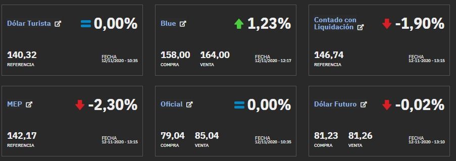 El dólar blue sube por segundo día consecutivo y se ubica en $166 para la venta (aunque en algunas cuevas ya se ofrece a $168), cuatro pesos por encima del cierre de ayer. La cotización informal se mantuvo en tendencia bajista durante más de dos semanas hasta que el martes alcanzó el piso de $149 y llegó a estar 46 pesos por debajo del récord de $195 alcanzado el pasado 23 de octubre.