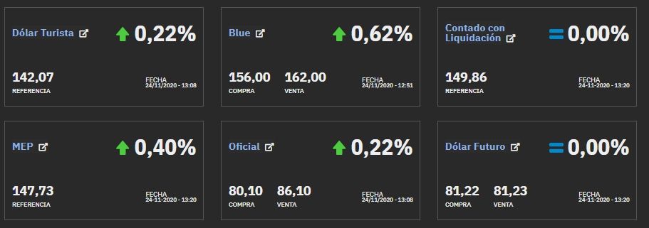 La semana pasada, la cotización se mantuvo entre los $161 y $163 tras un arranque caracterizado por la volatilidad. A días del comienzo de diciembre, que se suele caracterizar por una mayor circulación de pesos, las expectativas están enfocadas en qué ocurrirá con la cotización informal, que el 23 de octubre pasado llegó a $195.