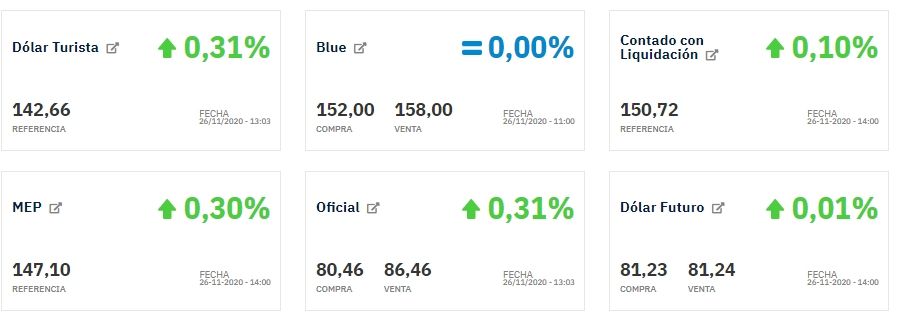 Al igual que el miércoles, la jornada se ha caracterizado por el bajo volumen de negocios, a raíz de que es feriado en Estados Unidos por el Día de Acción de Gracias mientras que en la Argentina persiste la conmoción por la muerte de Diego Armando Maradona.