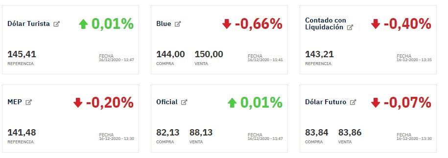 El dólar oficial se vende a $ 88,13 en el segmento minorista, mientras que el mayorista -en el que operan los bancos y las grandes empresas- sube 9 centavos y llega a $ 82,62. De esta manera, la brecha con el dólar blue se ubica en 84%.