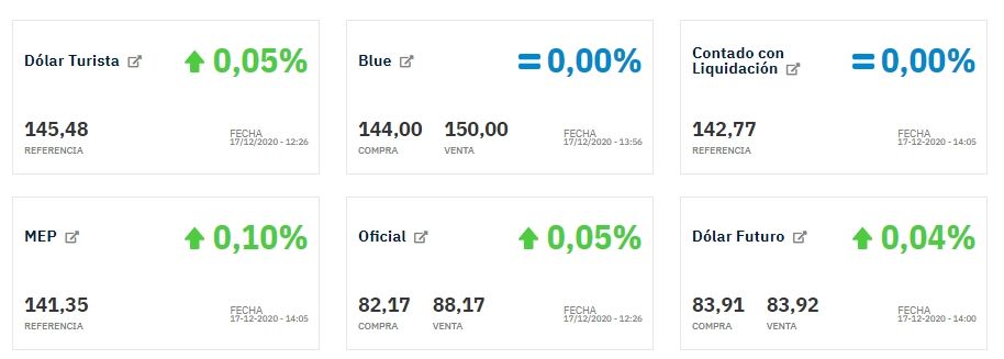 Los dólares financieros también se mantienen en los mismo valores al que cerraron el miércoles. El contado con liquidación, que se utiliza para sacar divisas al exterior, se ubica en $142,93, mientras que el dólar MEP o Bolsa, que permite conseguir dólares con la compra y venta de bonos, sube levemente y se ubica en $141,42.