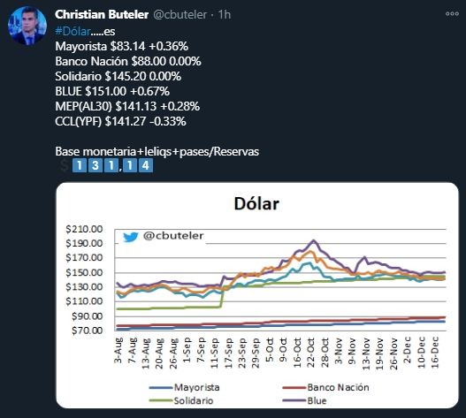 El dólar oficial, por su parte, sube un 0,53% y se ubica en $88,73 en el segmentos minorista, mientras que en el segmento mayorista sube un 0,37% y llega a los $83,15.