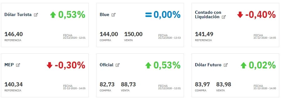 De esta manera, el dólar turista o ahorro llega a los $146,40 sumándole al oficial el 30% del impuesto PAIS y el 35% de anticipo de Ganancias y Bienes Personales.