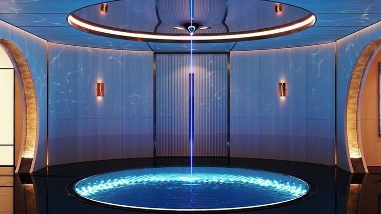 La nave funciona totalmente con hidrógeno líquido, lo que significa que su única emisión es agua. Según los planos dados a conocer en el Salón Náutico de Mónaco el año pasado, el lujoso transatlántico tiene 112 metros de largo y cinco cubiertas con espacio para 14 invitados, 31 miembros de la tripulación, un gimnasio, un estudio de yoga, un salón de belleza, un salón de masajes y una piscina en cascada en su cubierta trasera.