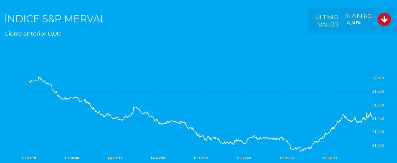 El índice S&P Merval cayó 4,30% y el riesgo país cerca de los 3.000 puntos