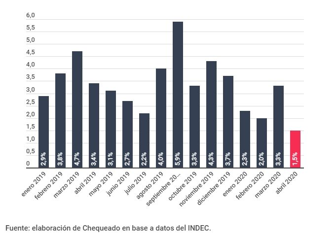 El INDEC informó que la inflación fue de 1,5% en abril último, por lo que el Índice de Precios al Consumidor (IPC) ya acumula un aumento del 9,4% en los primeros 4 meses de 2020 y un 45,6% los últimos 12 meses. Este dato mensual de abril -en un contexto de congelamiento oficial de dólar comercial y tarifas- es el más bajo desde noviembre de 2017, pero se enmarca en un evento histórico como la pandemia de la COVID-19 y la cuarentena obligatoria dispuesta por el Gobierno nacional. ¿Cómo se midieron los precios en este contexto extraordinario?