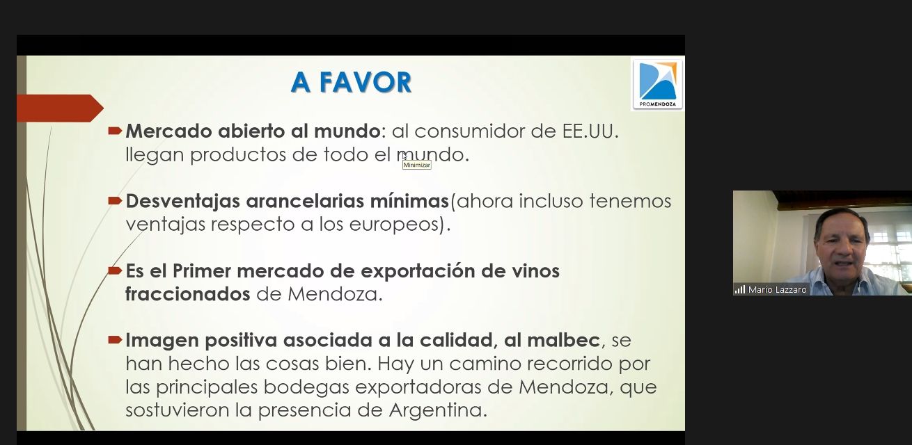 “Es un mercado maduro por lo que es muy importante trabajar sobre la demanda en el punto de venta”, explicó el gerente Mario Lázzaro en el inicio del encuentro virtual, organizado por ProMendoza, para bodegas que buscan importadores, distribuidores o quieran incrementar sus ventas en Estados Unidos.